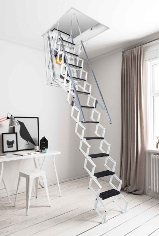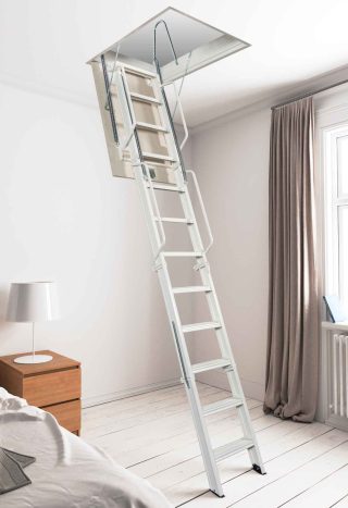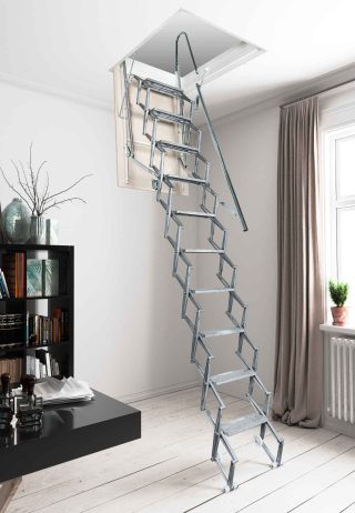 Las escaleras escamoteables facilitan el acceso de forma segura y cómoda a espacios no habitados.Disponemos de varios modelos de escaleras escamoteables, tanto de tramos como de pantógrafo ó tijera. Diseñadas especialmente para problemas de espacio, solucionando el acceso a plantas superiores, entrepalntas, camarotes, trasteros, desvanes, etc…